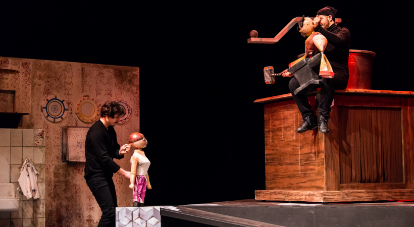 Hol volt, hol nem volt, hetedhét országon is túl, még az üveghegyeken is túl, volt egyszer egy király, annak egy fia meg három lánya. A fiút Vas Lacinak hívták, mert olyan erős volt, mint maga a vas. No de nemcsak erős volt Vas Laci, de csintalan is: hét ördög lakott benne. Egy nap annyira megmérgelte magát a nővérei civakodásán, hogy azt kívánta, nyelje el őket a föld. És így is lett. Laci nem tehetett egyebet, útnak indult, hogy felkutassa a nővéreit. Ezzel vette kezdetét Laci útja az izgalmas kalandok és a hőssé válás felé. A magyar mese- és mondavilág egyik legmozgalmasabb klasszikusa Benedek Elek meséje nyomán, új köntösbe öltöztetett hagyományos bábtechnikák segítségével, élőzenével fűszerezve kel új életre a Vojtina Bábszínház színháztermében.