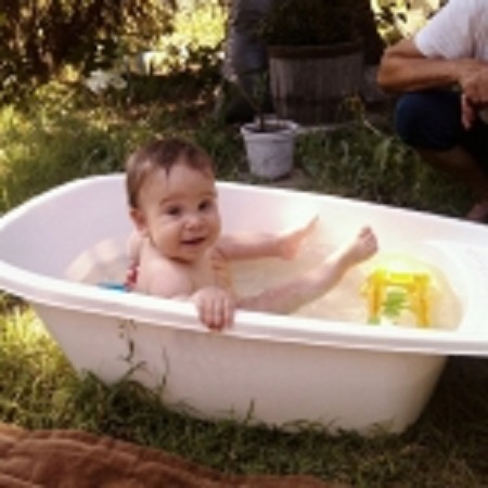 kicsit retrós ez a kiskádban fürdős kép, de először a kis vízben pancsolunk, aztán majd a nagyvízekben úszkálunk.