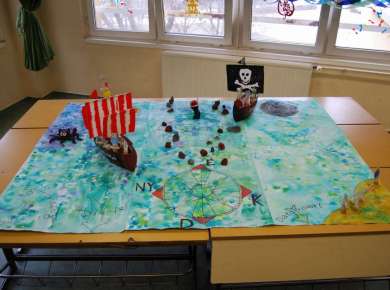 A képeken is látható, hogy az osztály minden tagja aktívan kivette a részt a munkából. Voltak feladatok, amiket teljesen önállóan végeztek el a gyerekek, más lépéseknél természetesen segítséget igényeltek, de abban is nagyon ügyesek voltak. Még a ragasztópisztolyt is bátran használták. Aranyos volt, hogy még el sem készült teljesen a mű, már elkezdtek játszani a meglévő szereplőkkel, hajókkal. Utána pedig egy egész délután át tartó játék következett, amit remélhetőleg sok másik fog követni!